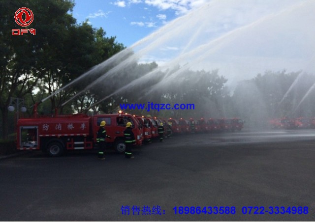 湖北江南專用特種汽車有限公司專門為小區(qū)、村鎮(zhèn)、糧庫、碼頭、校園、商場(chǎng)、工業(yè)園設(shè)計(jì)了一種簡易消防車又稱多功能灑水車,它有灑水車的前沖、后灑、側(cè)噴和工作平臺(tái),它的前沖寬度能達(dá)到14米,側(cè)噴水炮射程可以達(dá)到24米。